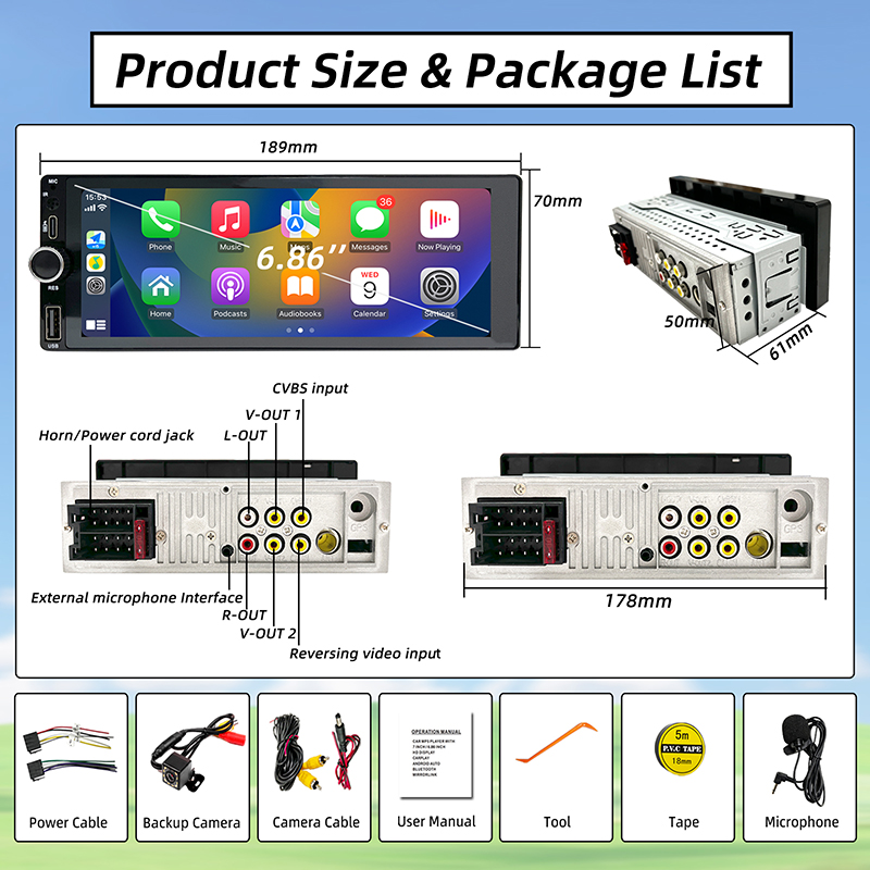 Dimensions: 189 mm × 70 mm × 61 mm.