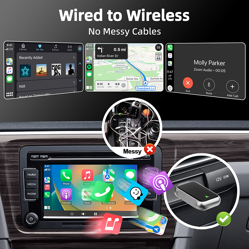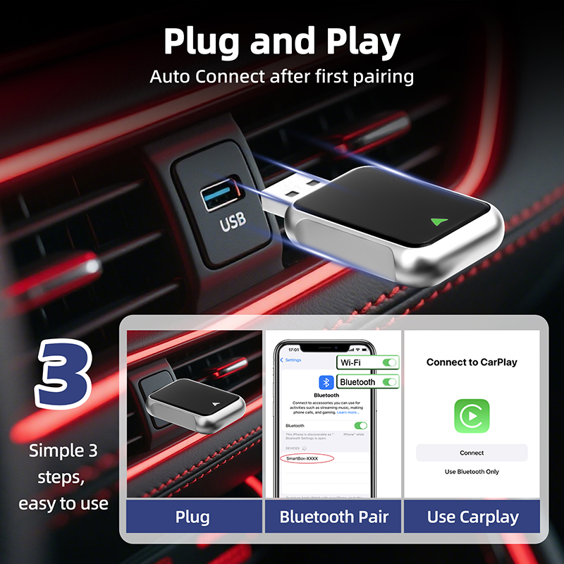 -- Plug and play, easy to use. No software to download. Just plug in, pair, and use carplay.