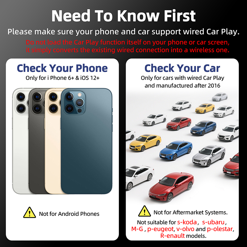 -- Widely used: It can be used in cars with Wired Car Play, suitable for phone iOS 12 and above.